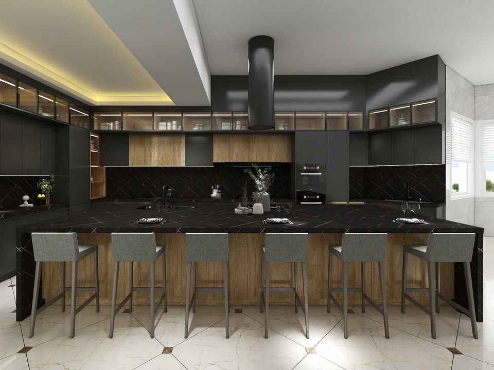 Dispositif:En bois, Écologique, Ignifuge, Cuisine Moderne, Armoire de cuisine modulaire