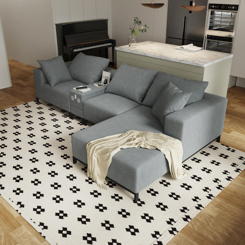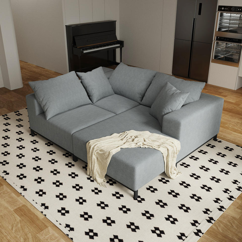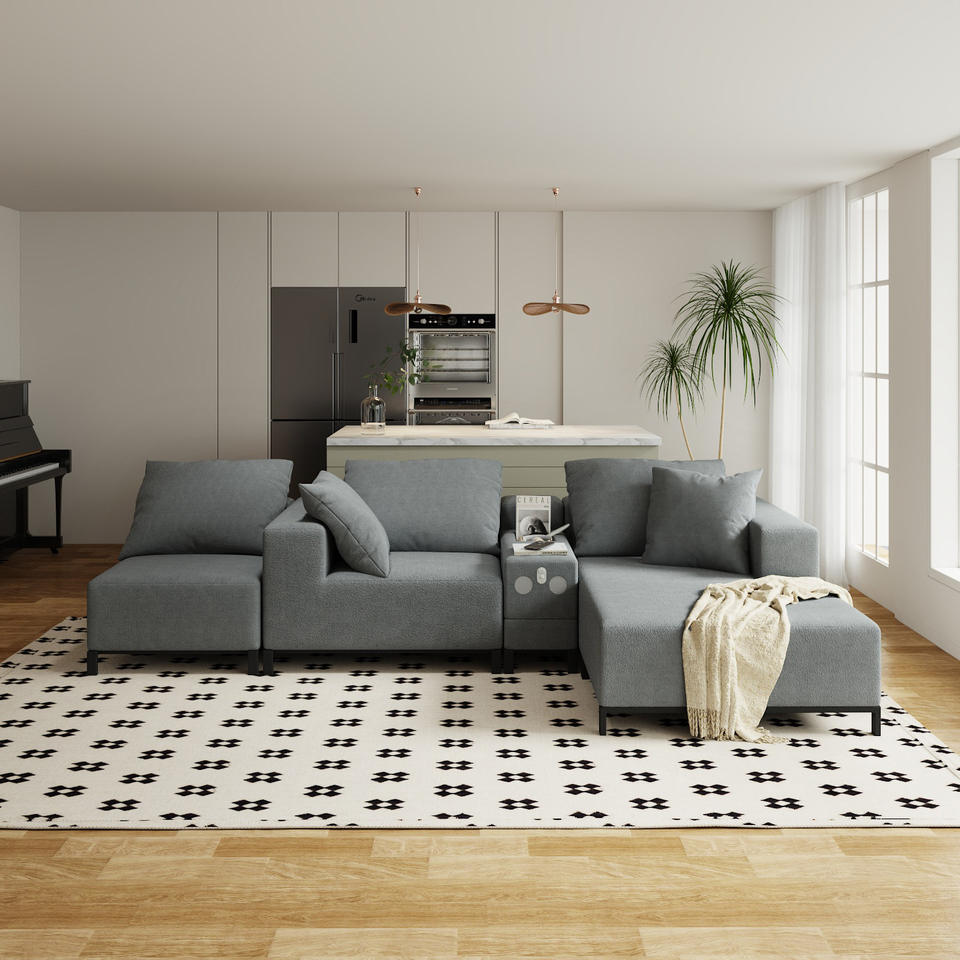 Canapé modulaire en forme de L, tissu en lin gris, rembourrage en éponge, meubles de salon