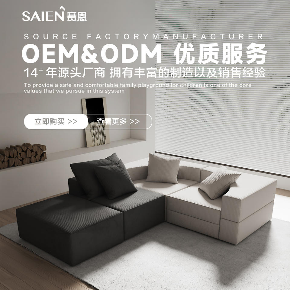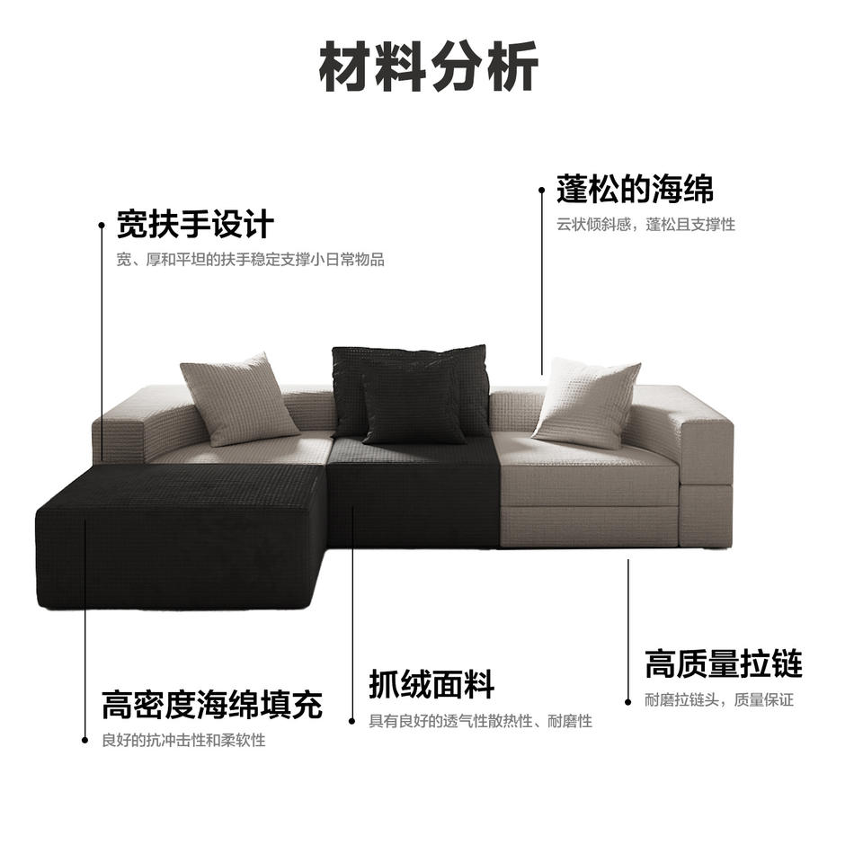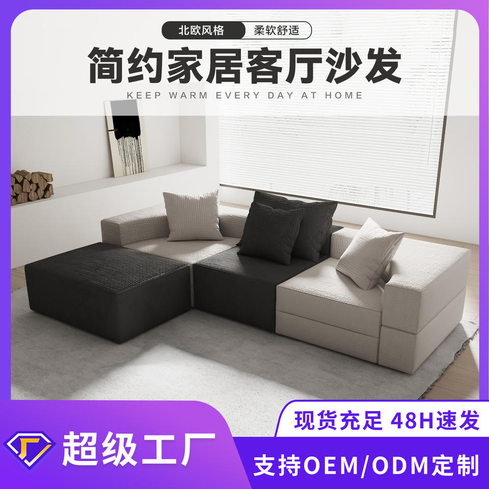 Canapé modulaire en forme de L avec rembourrage en éponge et tissu floqué pour salon