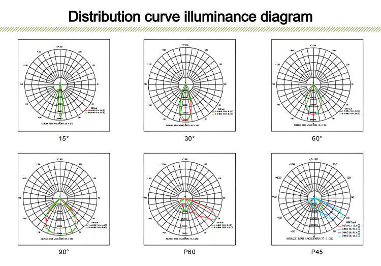 15°/30°/60°/90°/P6Forme de distribution de lumière