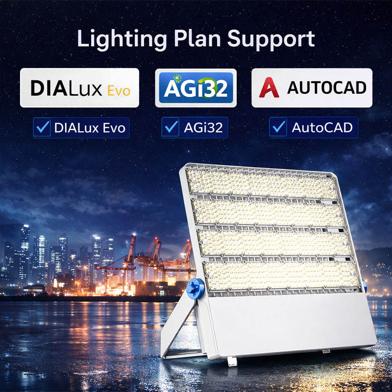 Projecteur LED Modulaire 500W 750W 1000W IP67 180lm/W pour Éclairage de Stades, Mât Haut, Aéroports, Ports et Terrains de Sport