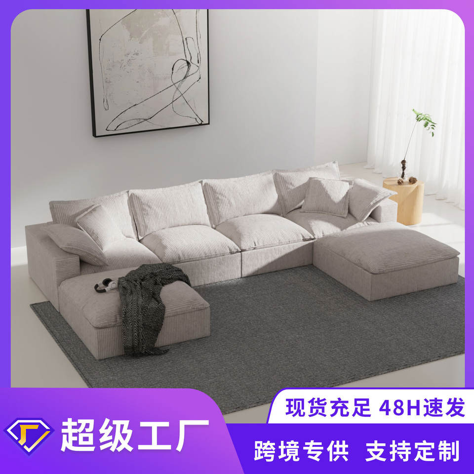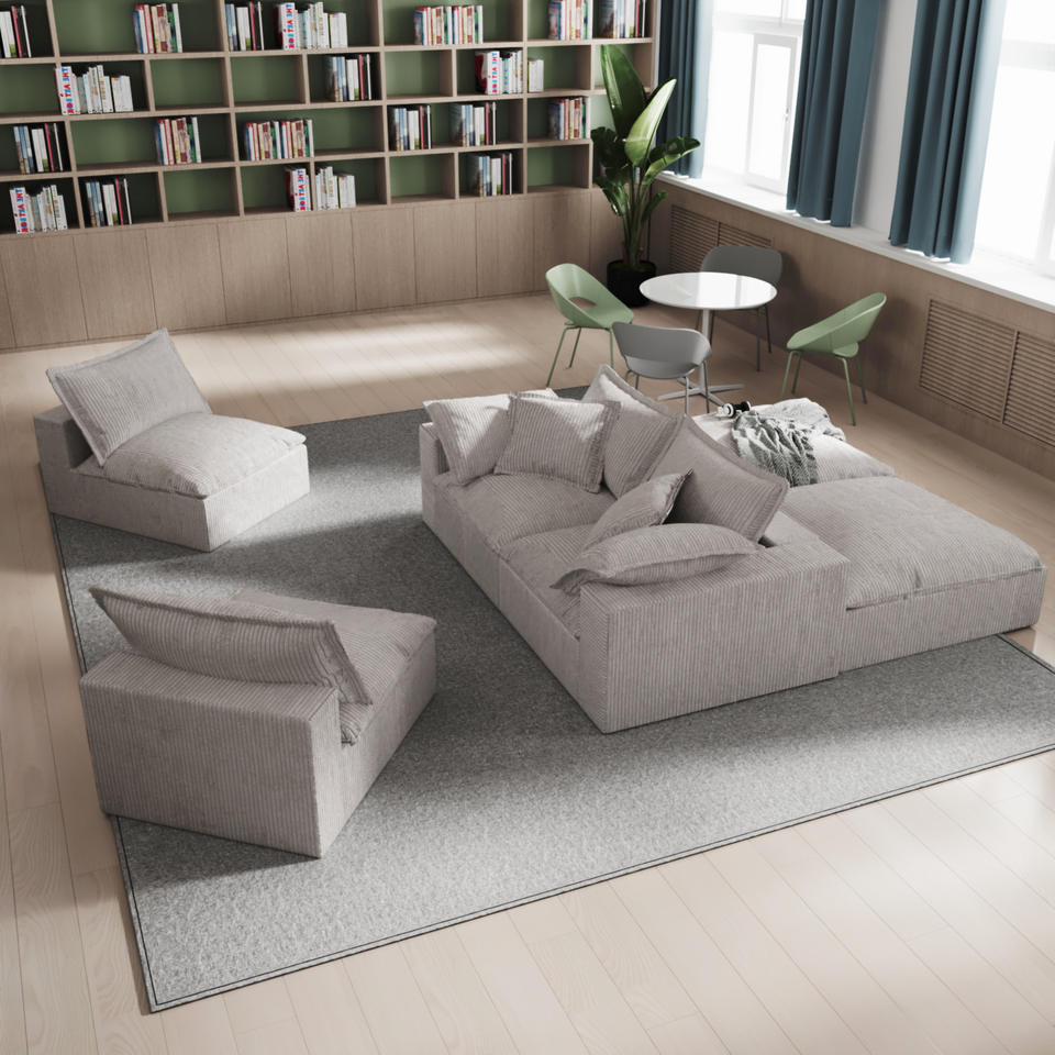 Ensemble de canapés modulaires gris clair avec rembourrage en éponge et tissu en lin pour salon