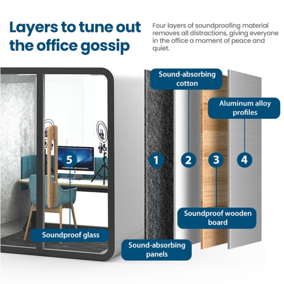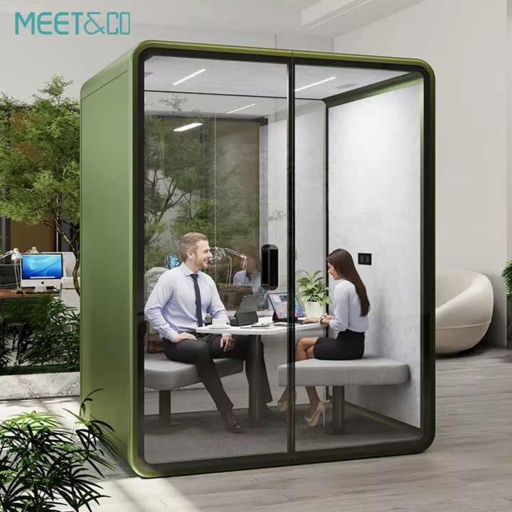 Cabine de réunion modulaire insonorisée pour 4 personnes, espace de collaboration moderne préfabriqué, salle acoustique intérieure/extérieure, villa de travail