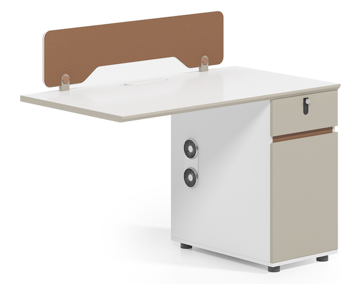 Poste de travail modulaire avec cloison d'intimité, rangements verrouillables et aérations de dissipation thermique, idéal pour les agencements de bureaux ouverts