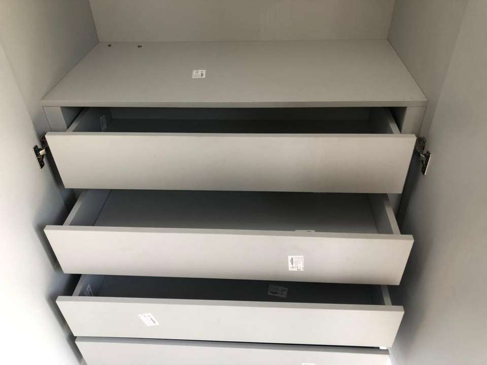 Tiroirs, porte-pantalon, porte-cravate, petite étagère, miroir coulissant, etc.