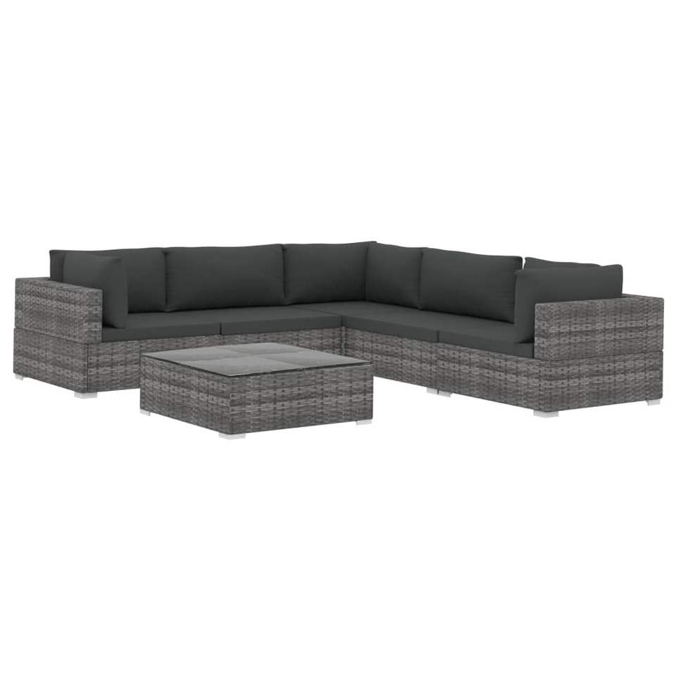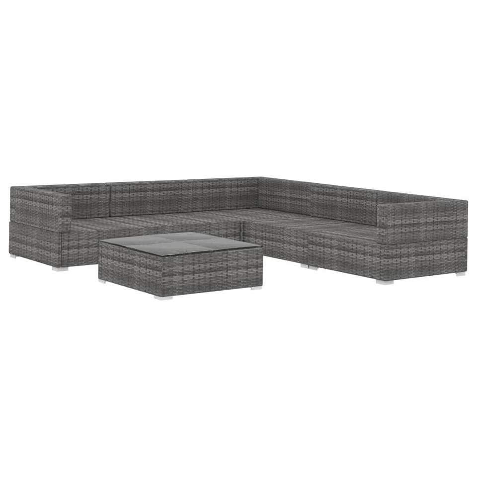 Ensemble de salon de jardin modulaire gris en rotin PE, mobilier de jardin extérieur 6 places, design contemporain