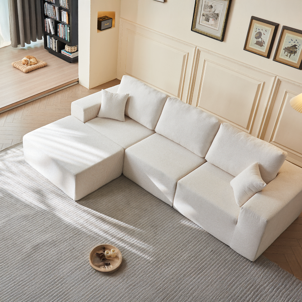 Canapé modulaire sectionnel en tissu rembourré, salon d'appartement, mousse haute densité, canapé nuage, forme carrée, canapé chaise longue moderne