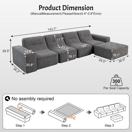 Ensemble de canapés modulaires sectionnels, assise profonde amovible, canapé moderne en chenille scintillante à monter soi-même pour salon, appartement, bureau