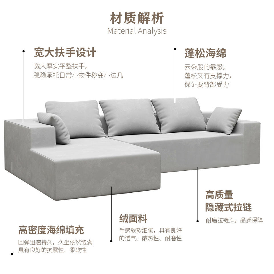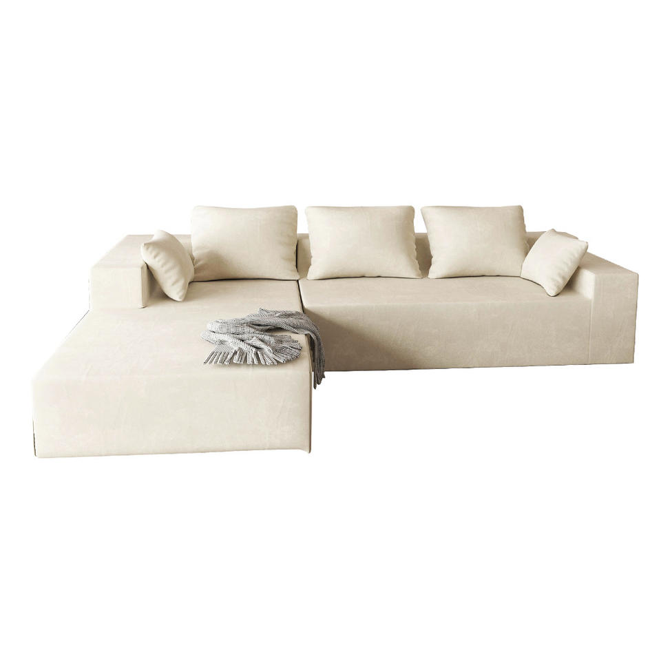Canapé modulaire en forme de L, tissu blanc cassé, rembourrage en éponge, meubles de salon