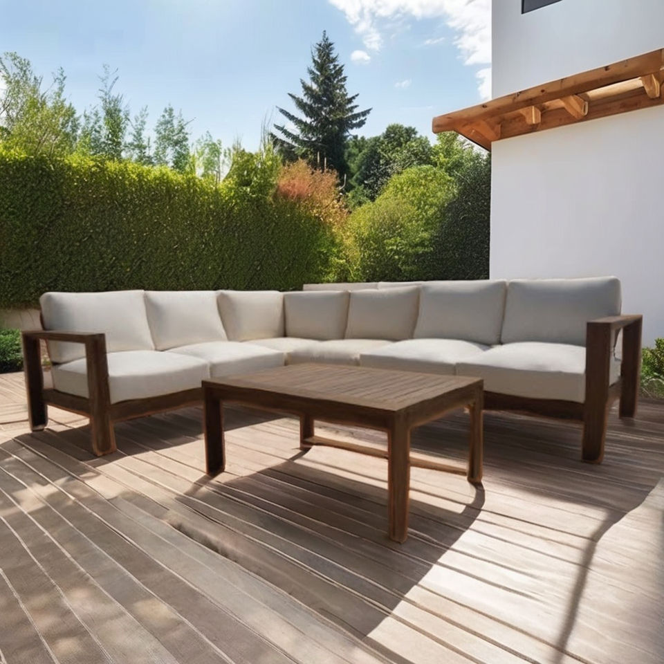 Ensemble de canapé modulaire en teck avec accoudoir gauche au design moderne pour une utilisation en extérieur
