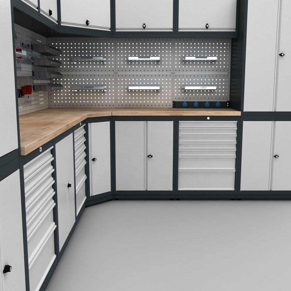 Système modulaire d'armoire à outils pour garages de mécaniciens Combinaison personnalisable de grands établis en acier