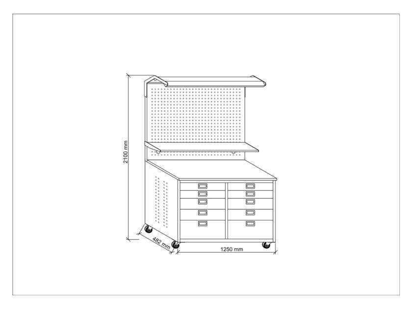 H: 2100 mm W: 1250 mm D: 482 mmDimension