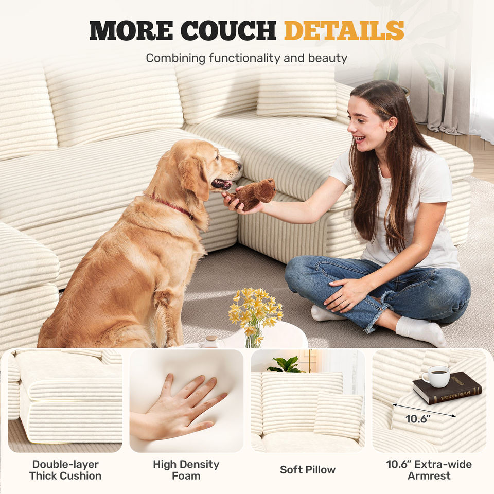 Canapé modulaire convertible écologique en velours, sectionnel carré, sièges profonds, emballé sous vide, design surdimensionné, oreillers inclus pour