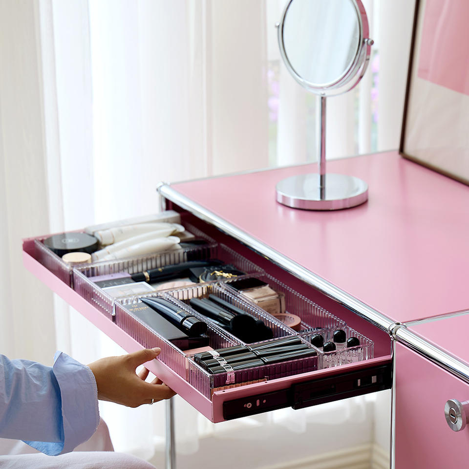 Table de toilette rose modulaire, armoire Bauhaus, table de maquillage vintage en acier inoxydable pour chambre à coucher