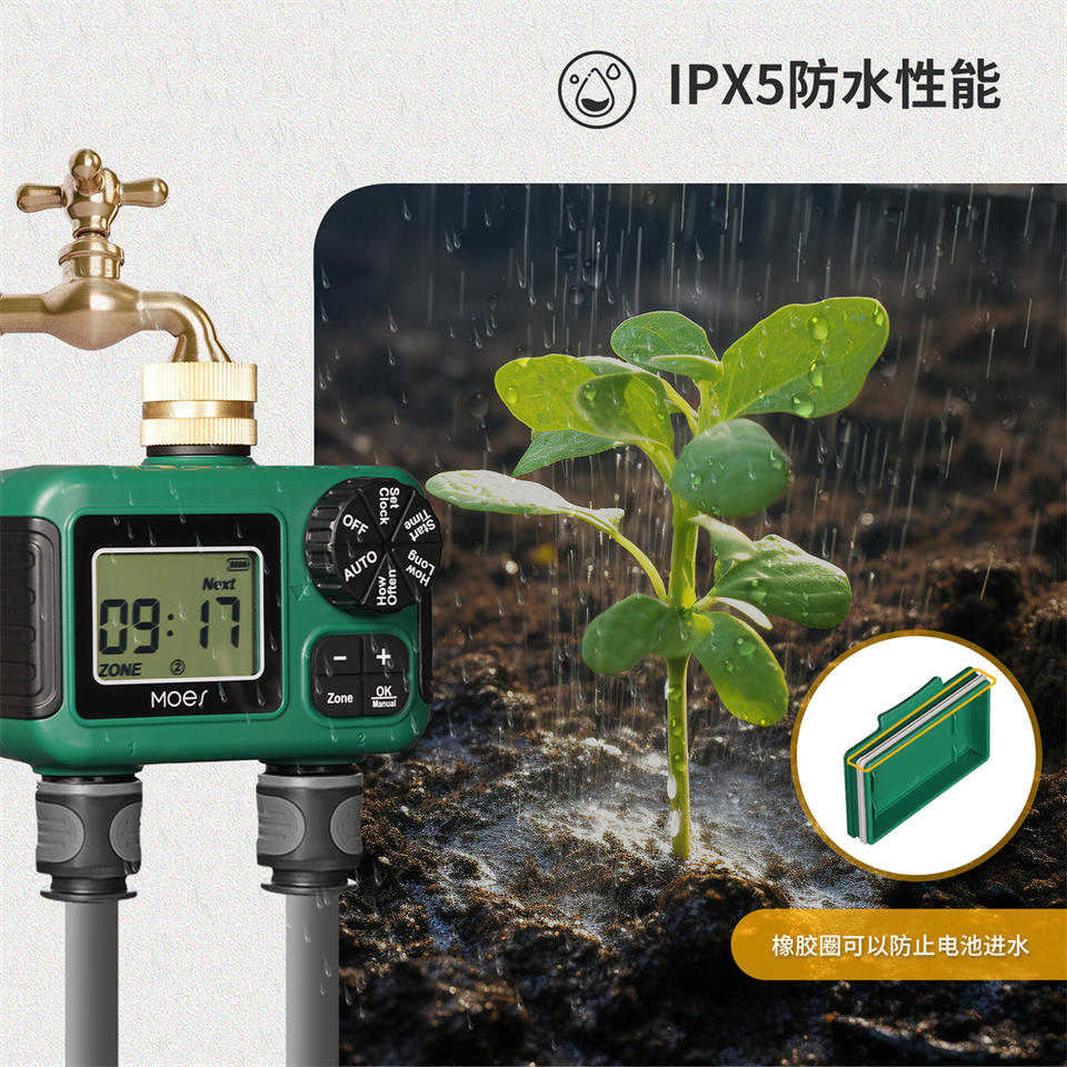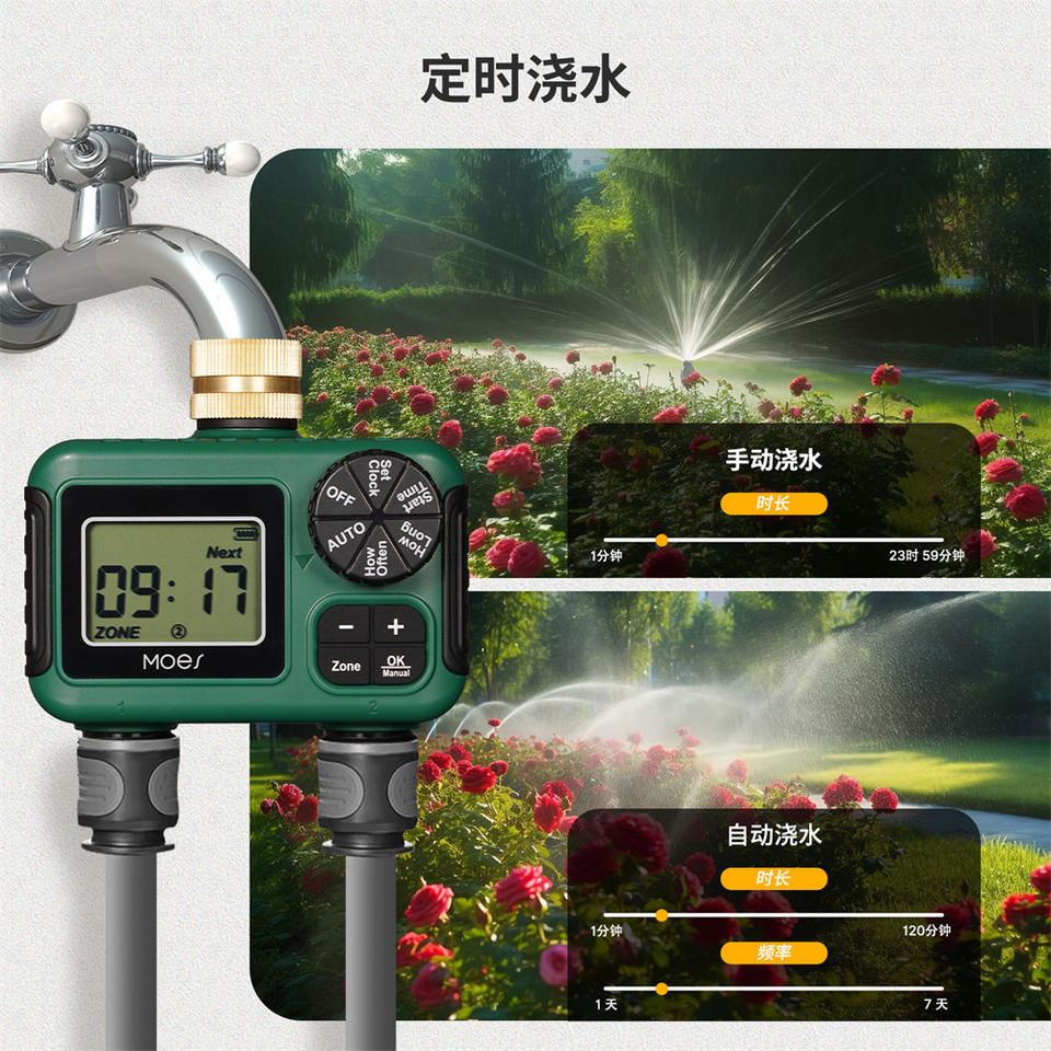 Minuteur d'irrigation numérique Moes 2 voies avec écran d'affichage et entrée en laiton pour arrosage automatique extérieur
