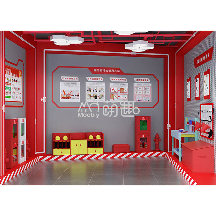Moetry Design personnalisé Soft Playhouse Kids Indoor Pretend Play City Fire Department Jeu de rôle en bois Terrain de jeu amusant