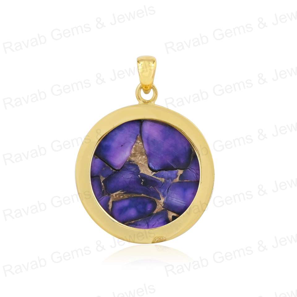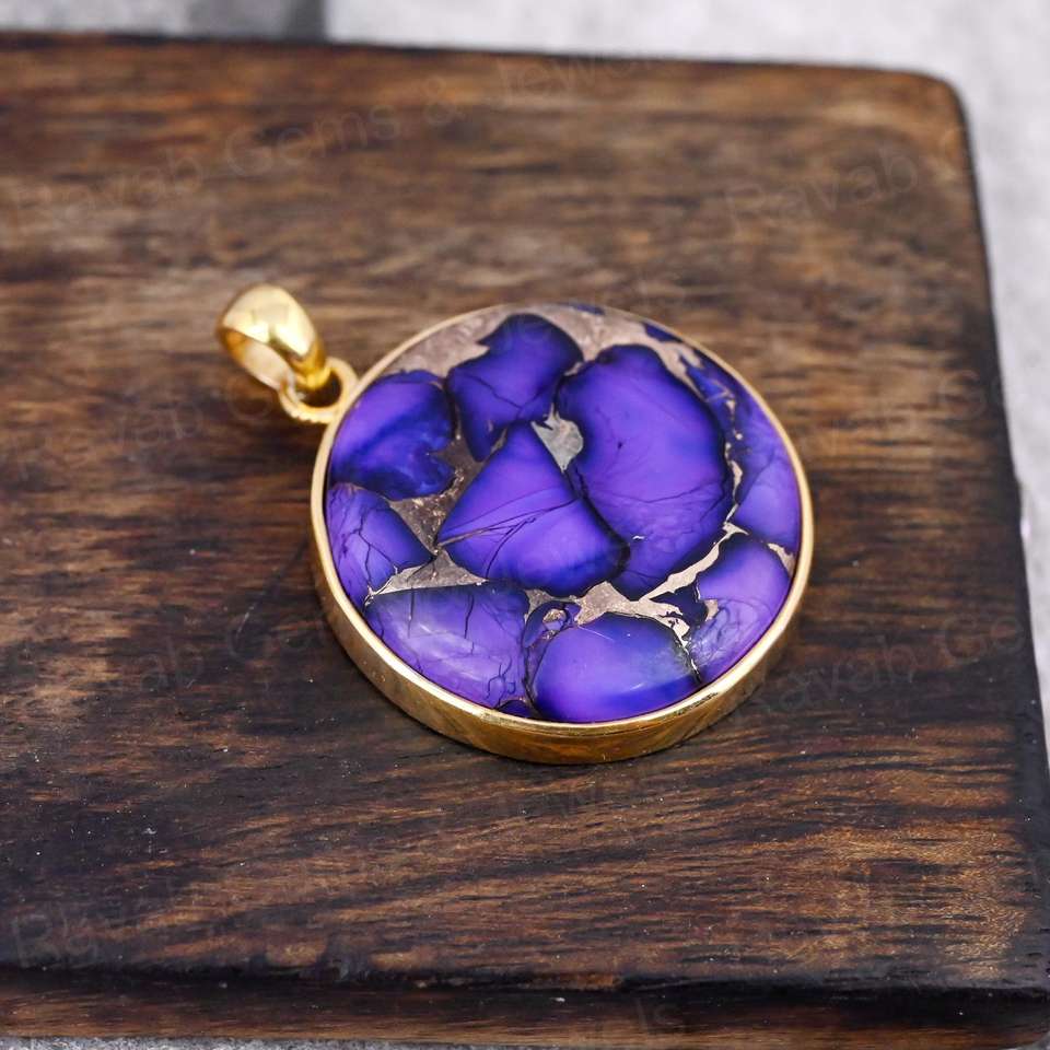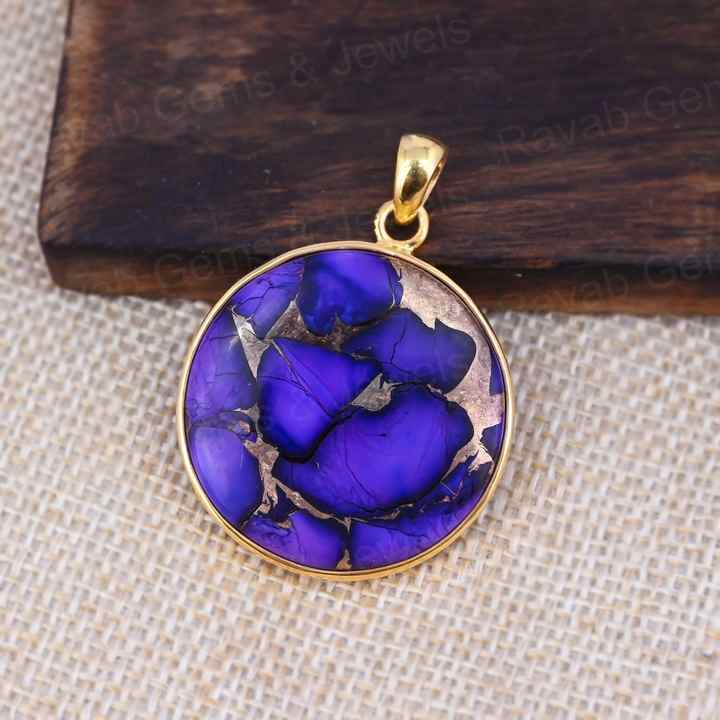 Nom du produit:Mohave violet cuivre Turquoise lunette pendentif breloque en argent