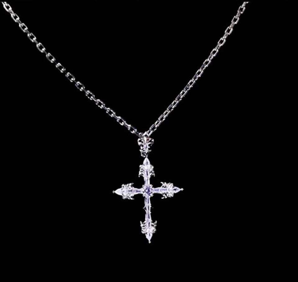 Pendentif Croix Gothique Sertie de Moissanite en Argent Sterling, Collier Fleur de Lys Style Hip Hop, Bijoux Luxira Plaqué Argent