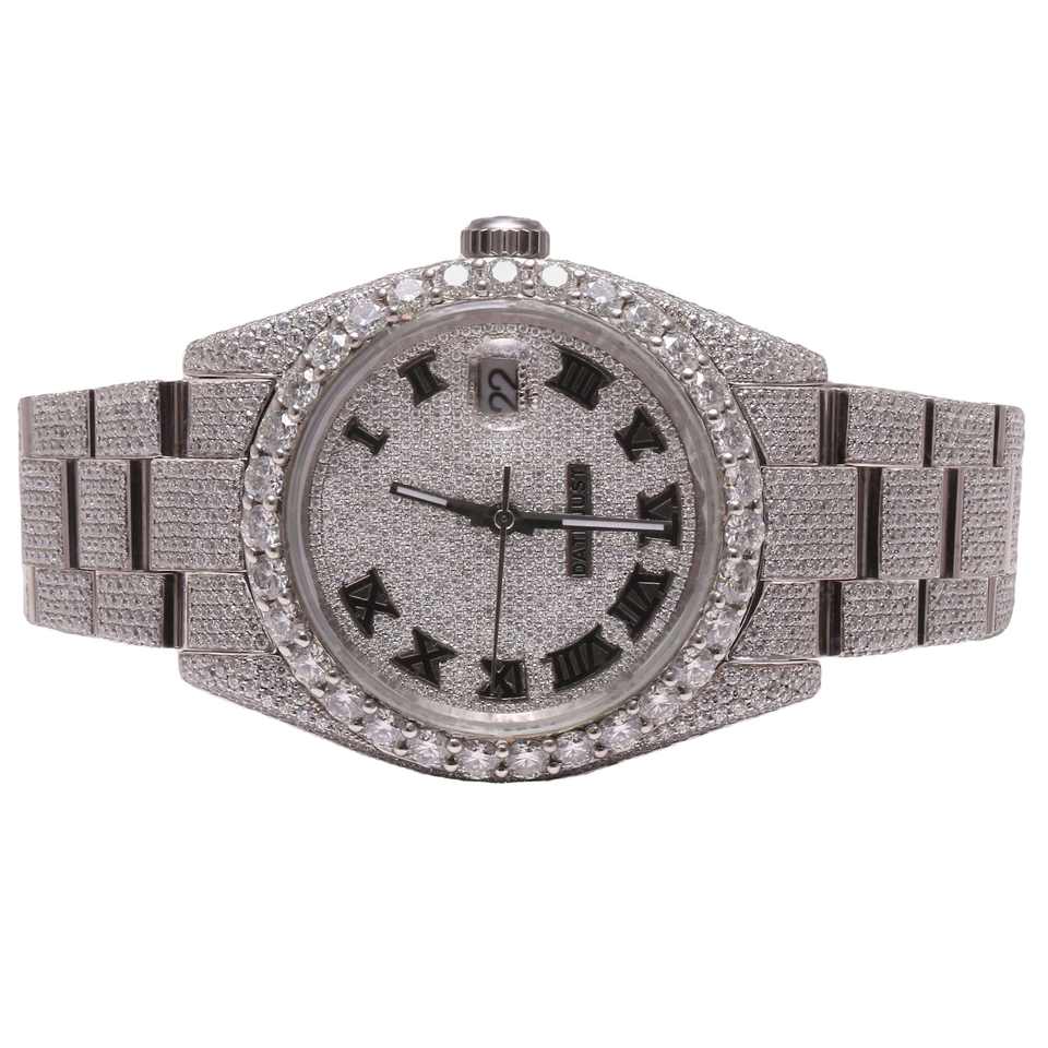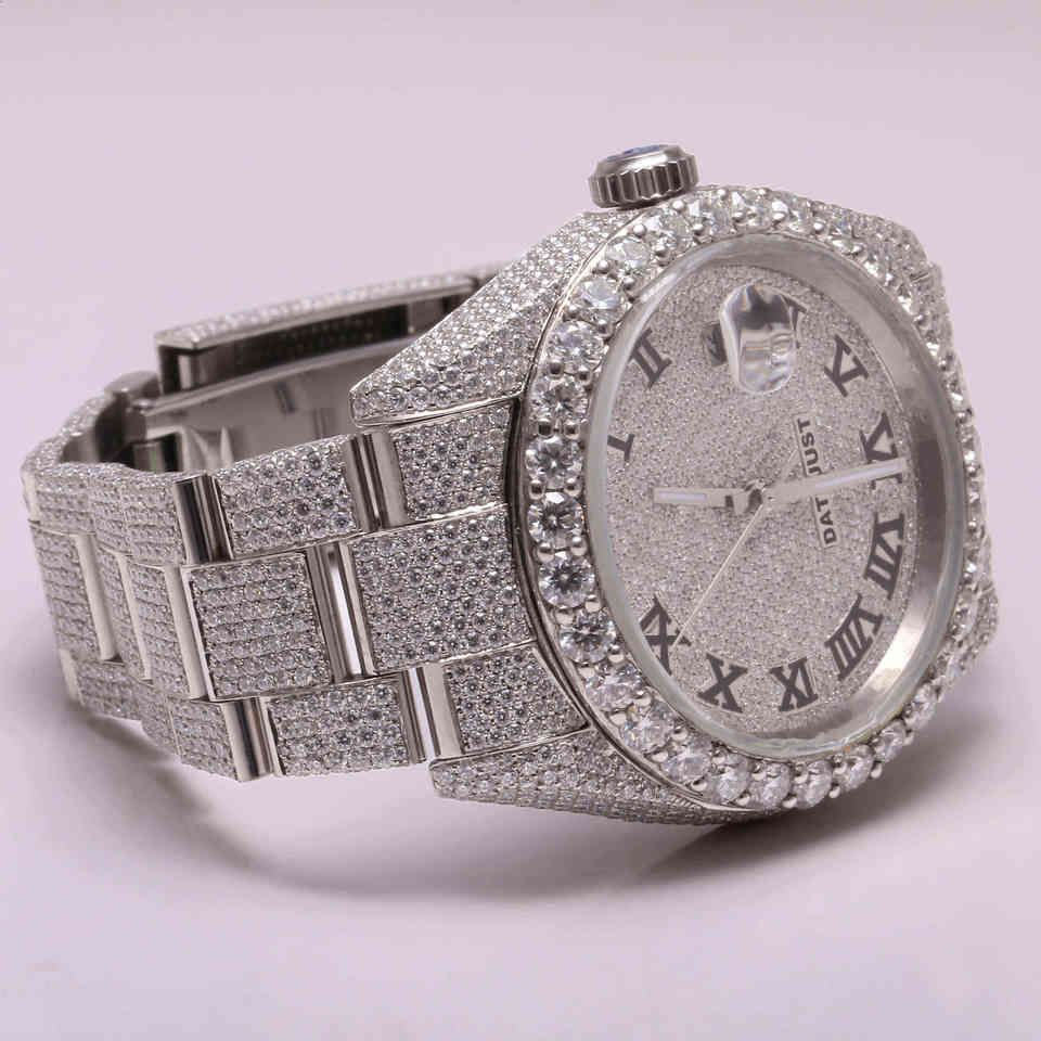 Moissanite Diamond Full Silver Icedown Bling Bezel Wrist Watches Automatic Mechanical Stainless Steel pass diamond tester watch