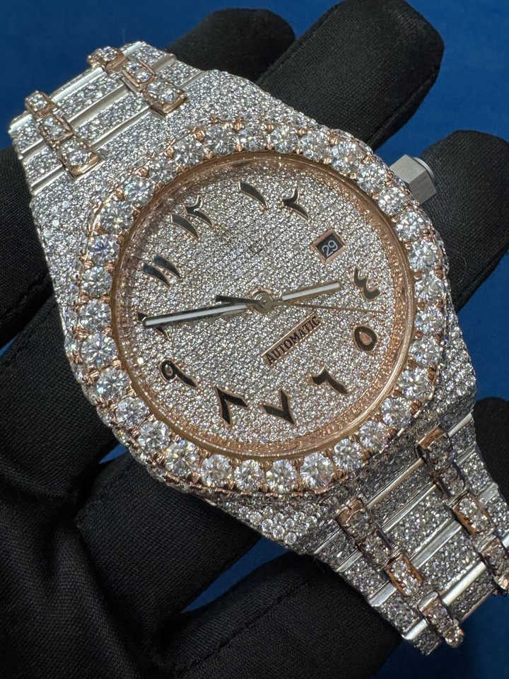 Moissanite Diamant Acier Inoxydable Glacé Hip Hop Cadran Arabe Mouvement Mode Montre-Bracelet pour Hommes Disponible à la Vente