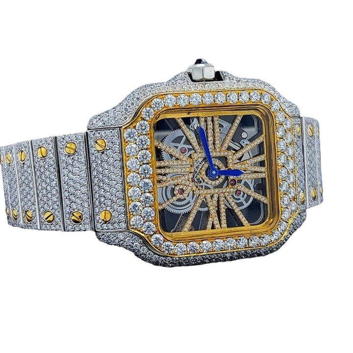 Moissanite Diamonds Watches Fully Iced Out Hip Hop Skeleton Luxury Automatic Quartz Movement Watch Bling Bust down Gift for Her