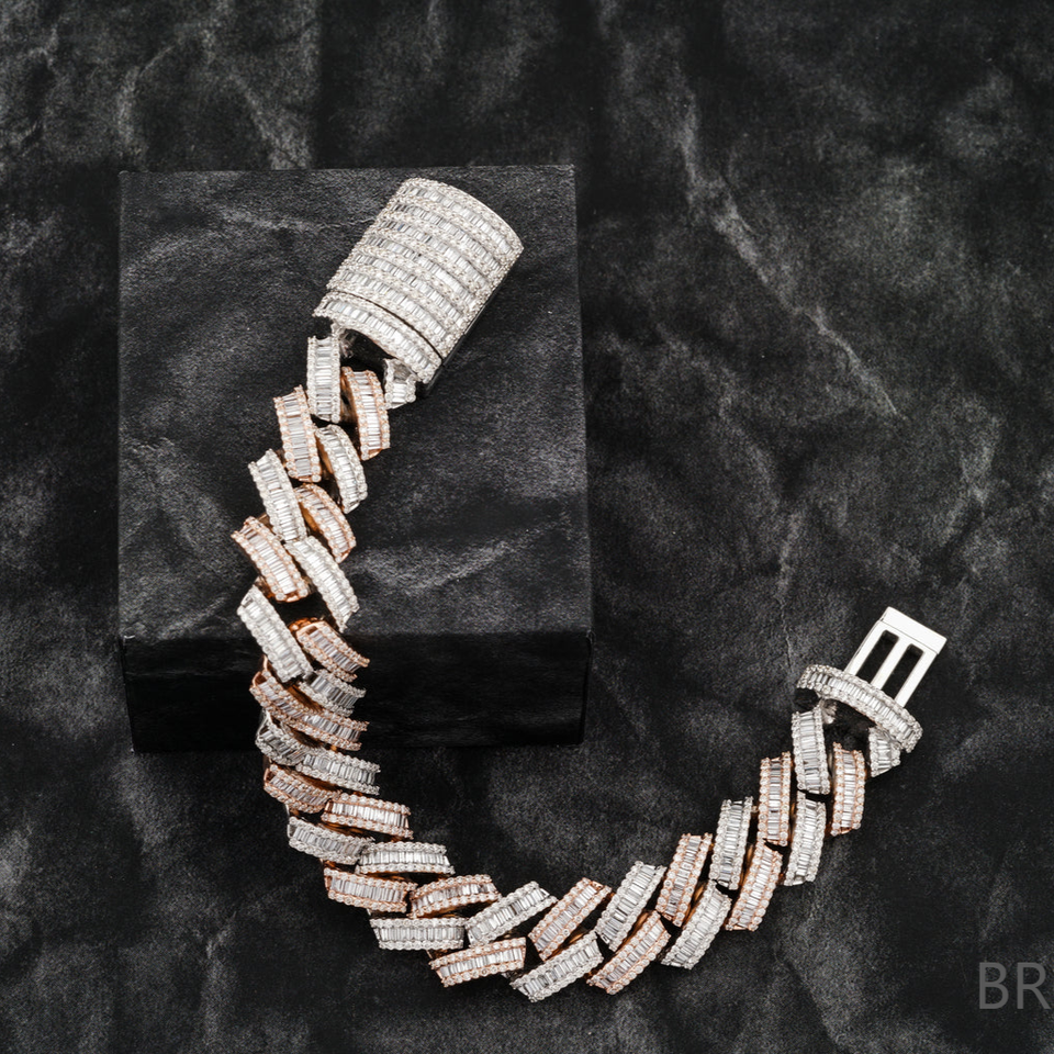 High Quality Luxury 18K Rose Gold Plated 12Mm Moissanite diamond 925 Sterling Silver Cuban Link Bracelets for Men