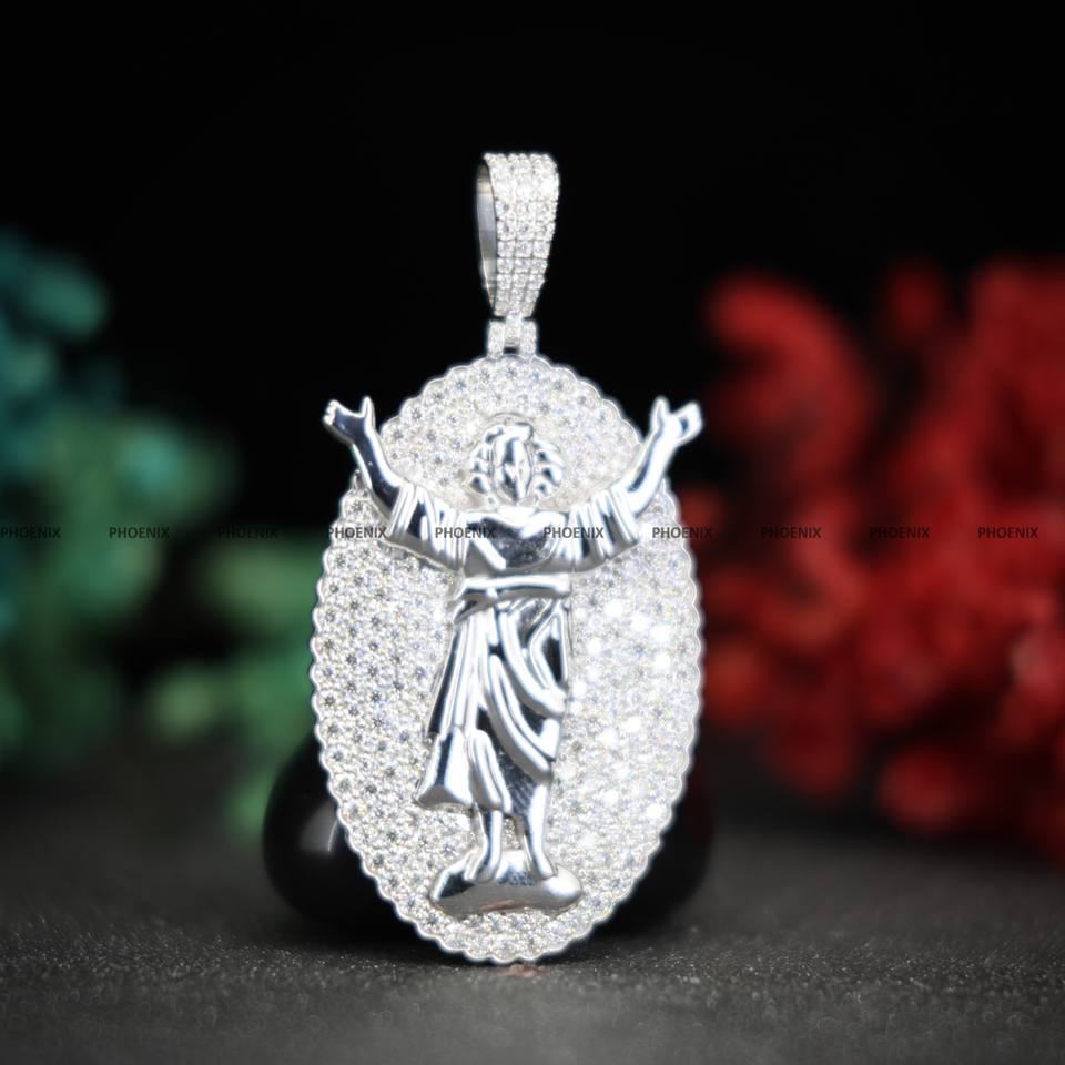 Moissanite Jesus Pendant Iced Out 925 Sterling Silver Religious Hip Hop Custom Jewelry by Phoenix Enterprise for Christmas Gift
