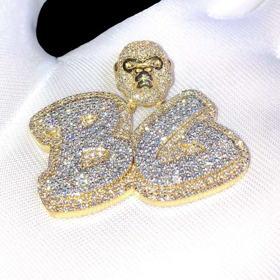 Moissanite VVS Men's Double Gold Plated Pendant Round Cut Diamond Design Pendants Charms 925 Sterling Silver