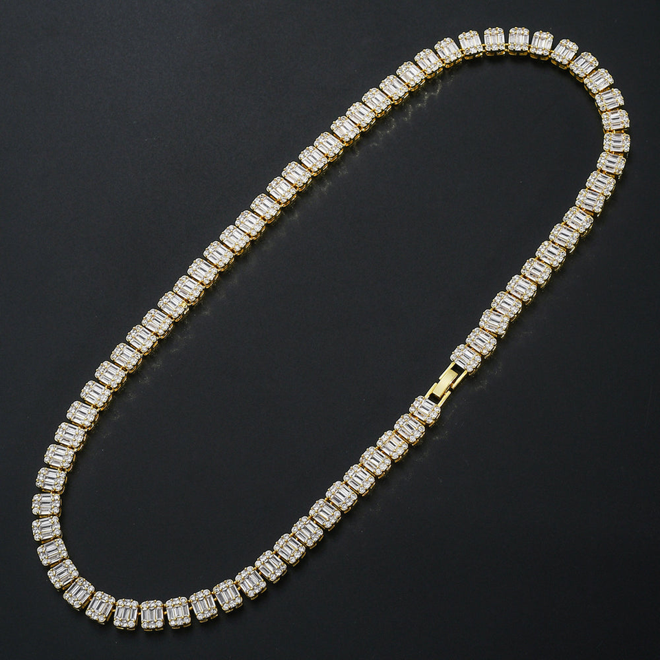 Moissanite diamond Tennis Chain\bracelet Square Baguette 925 gold pated Hiphop Iced Out Vvs Tennis Chain for men women