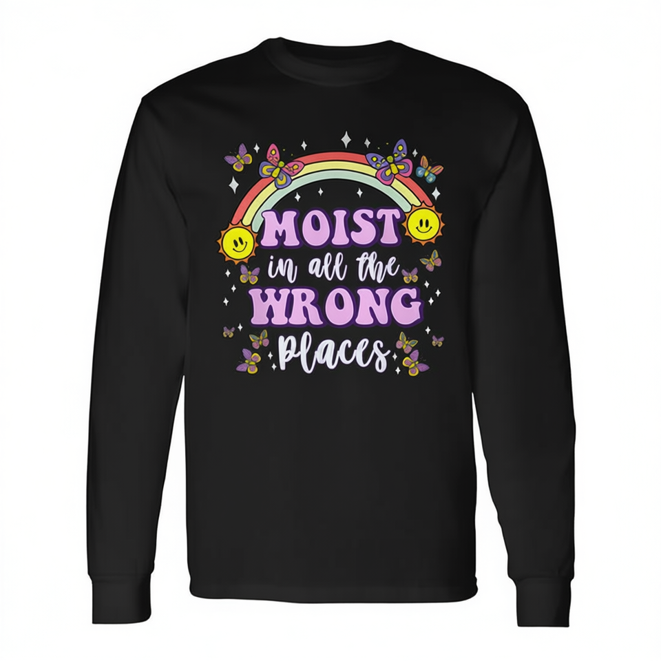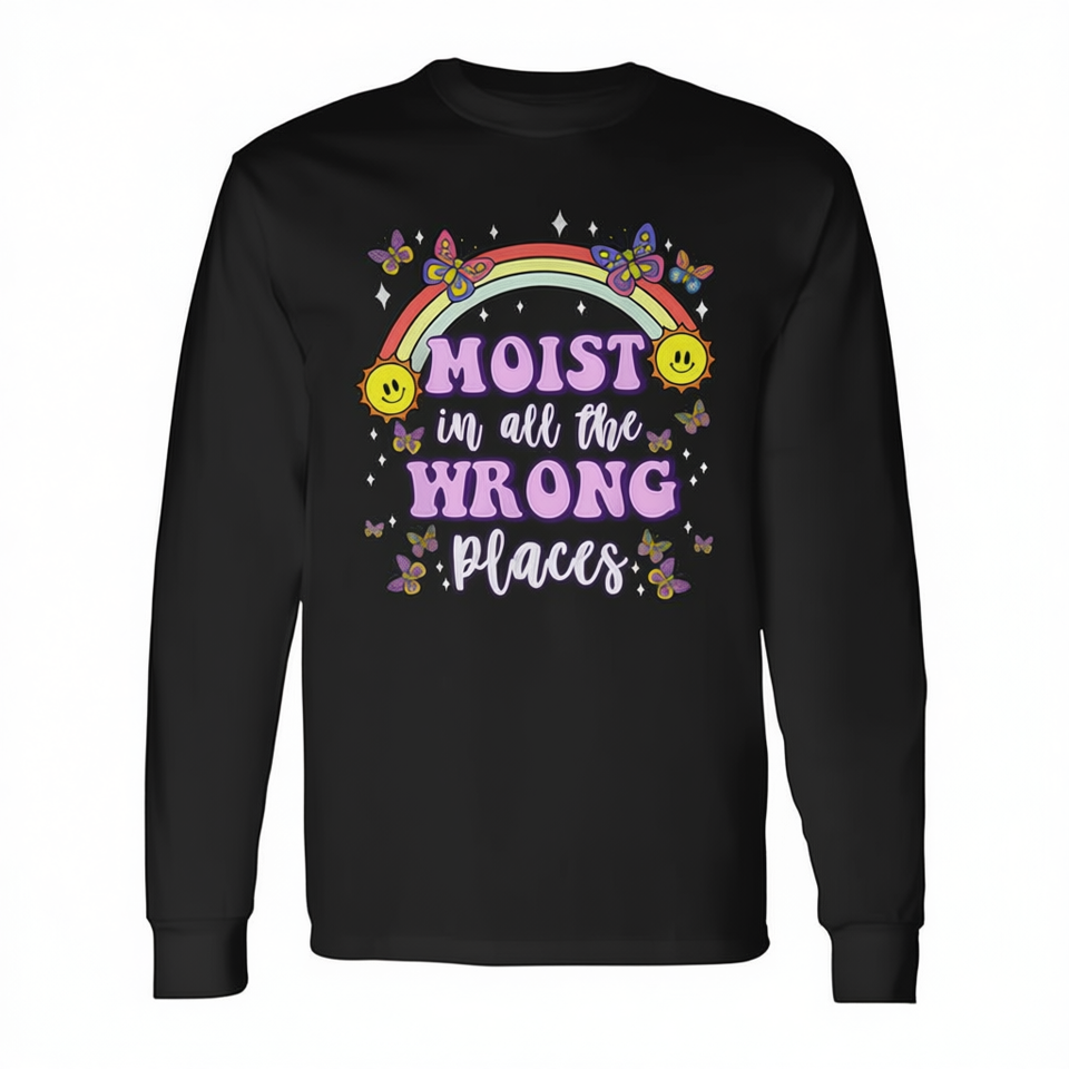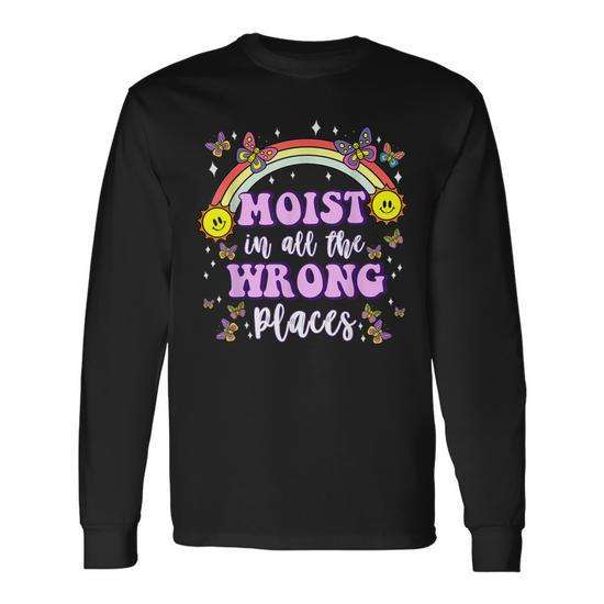 Moist In All The Wrong Places T-shirt à manches longues pour adulte, unisexe, col rond, impression numérique