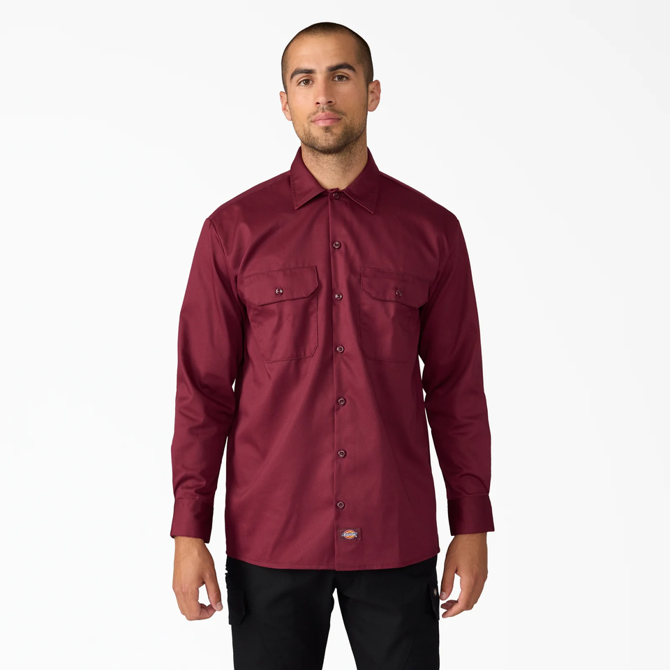 Moisture Wicking Ant Wrinkle Cotton for Construction Crews Men's Breathable Long Sleeve Work Shirt
