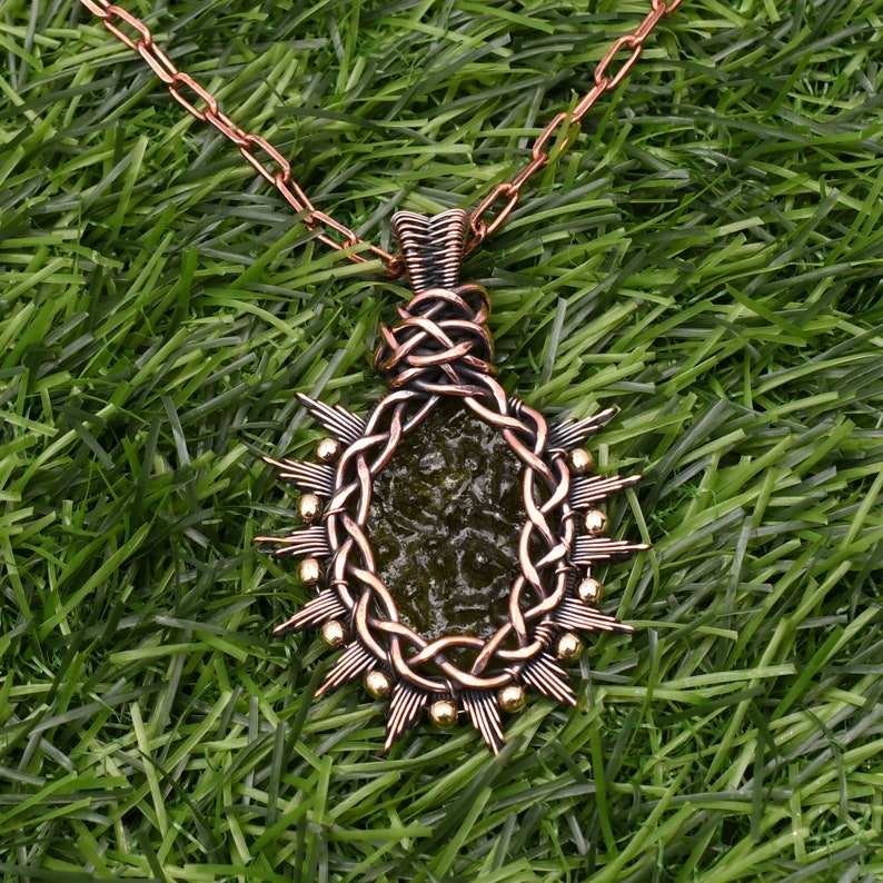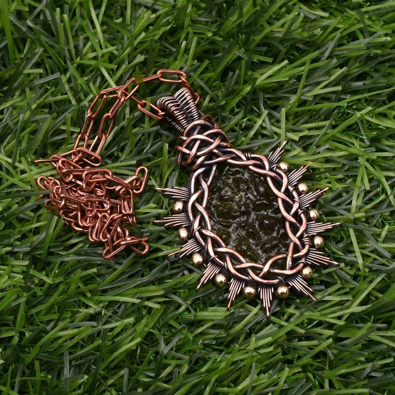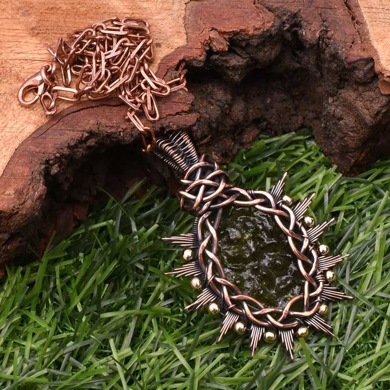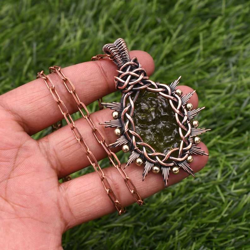 Moldavite Pendentif Fil De Cuivre Enroulé À La Main Pendentif Collier Avec Chaîne De Cuivre Cadeau Pour Hommes
