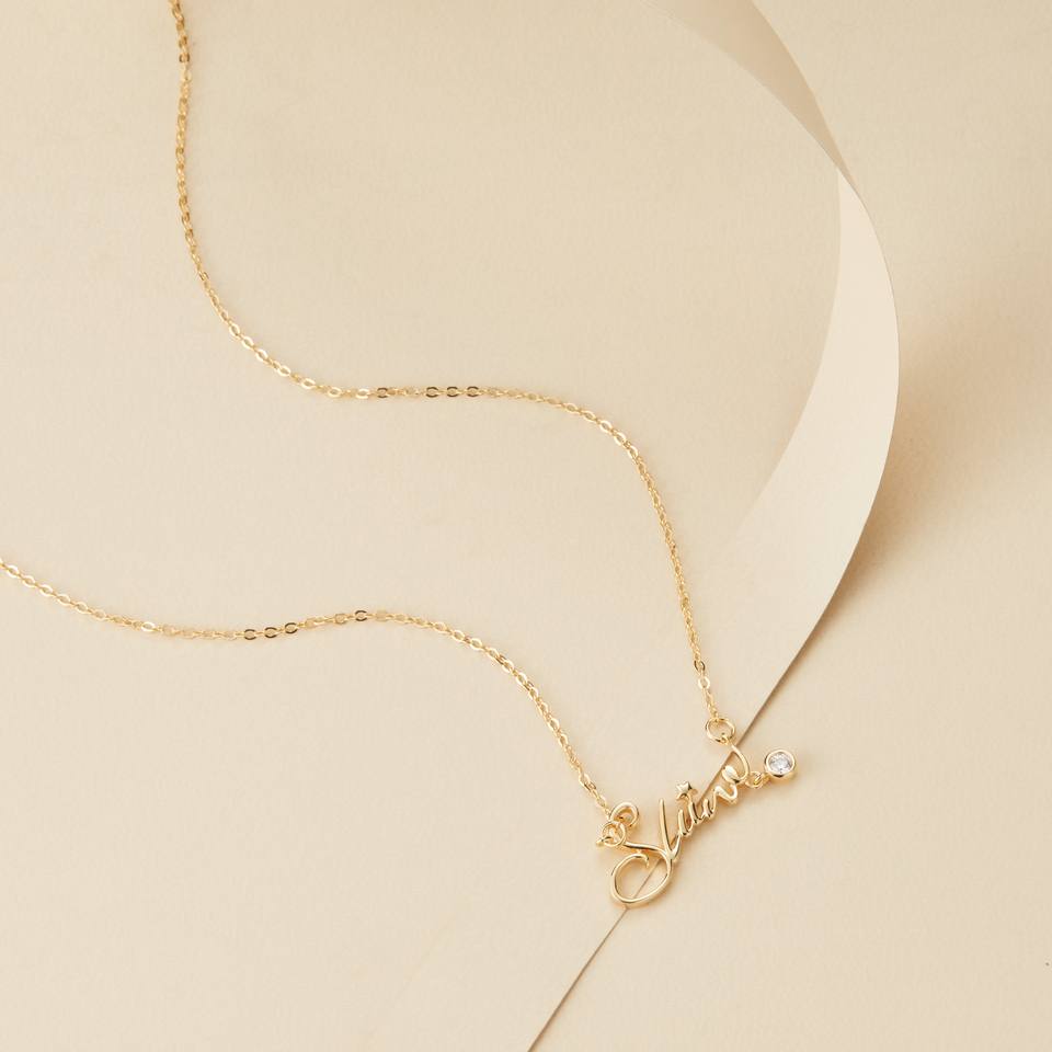 Cadeau maman Plaqué or 18 carats Pierre de naissance Lettre Bijoux CAD Dessin Collier Anniversaire Argent 925 Personnalisé Pierre Nom Collier