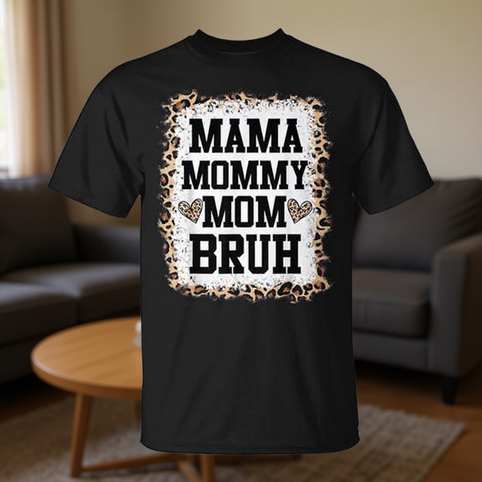Mom Life T-shirt à manches courtes imprimé léopard blanchi pour adulte, col rond unisexe, imprimé numérique