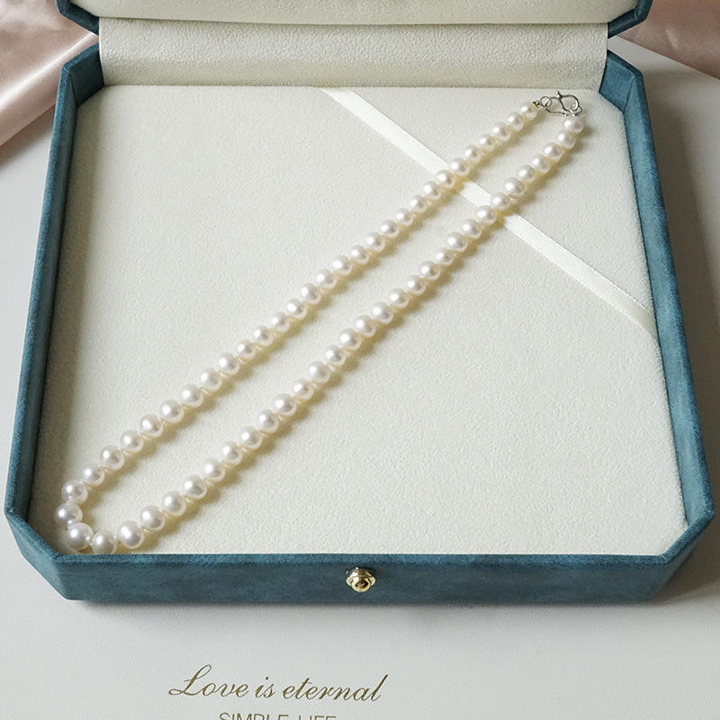 Mom's Shiny Transparent 7-10mm Freshwater Pearl Necklace S925 Silver Mother's Day Gift with Delivery Box