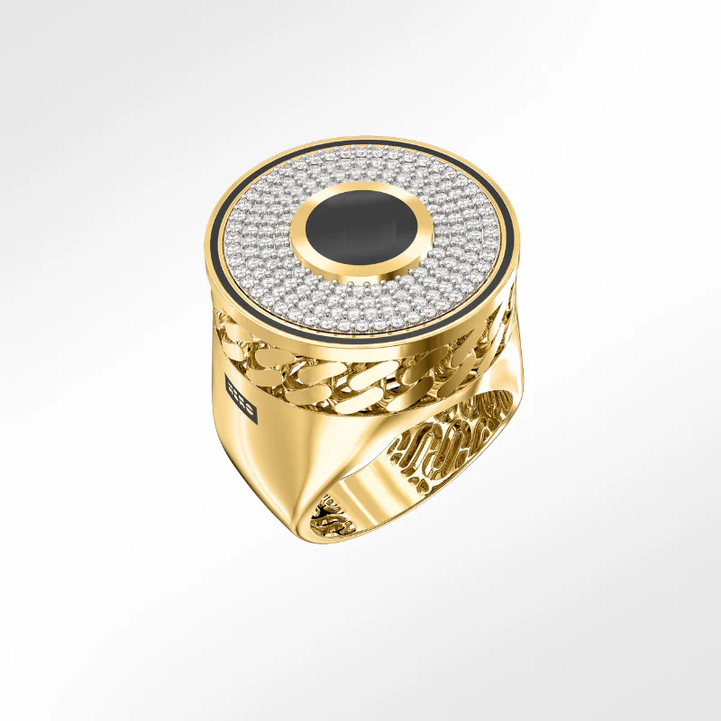 Bague Nero Monaco Chain pour homme Bijoux tendance avec or véritable jaune massif 10k en pierre blanche et noire