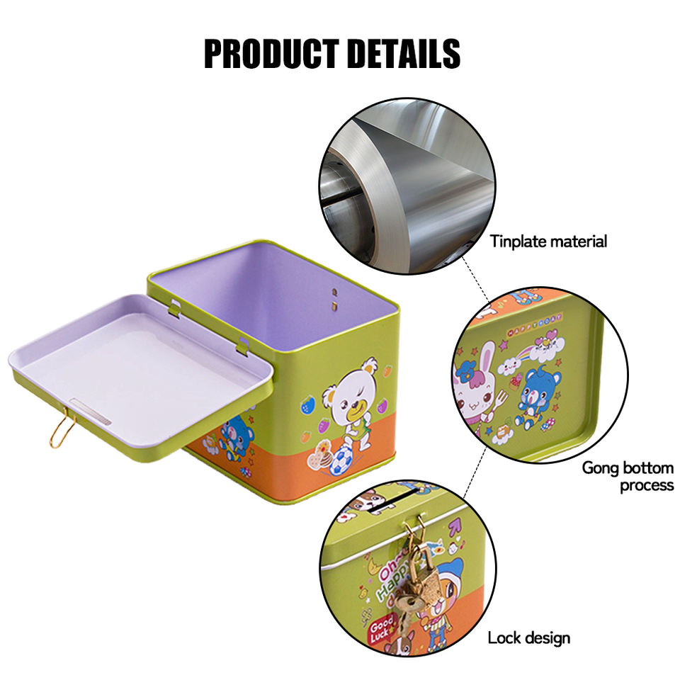 Boîte à monnaie en métal, boîte à monnaie en étain personnalisée, boîtes en étain rectangulaires
