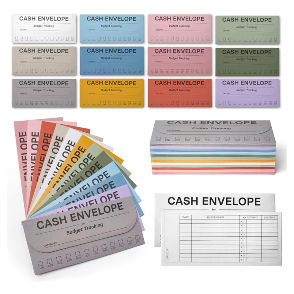Enveloppes à billets colorées pour la budgétisation et l'économie Enveloppe à fermeture éclair et 12 feuilles de suivi des dépenses