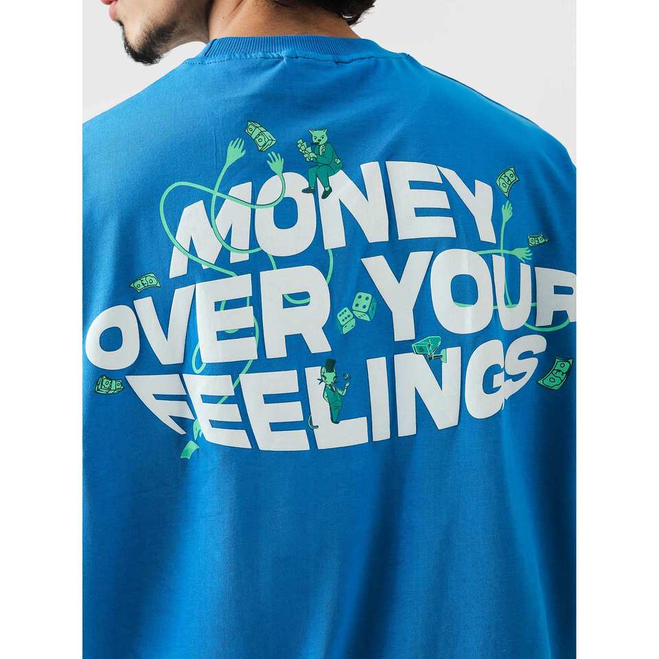 T-shirt style hip-hop « Money Over Feelings », 100 % coton jersey respirant, poids du tissu 280-300 grammes, impression sérigraphique