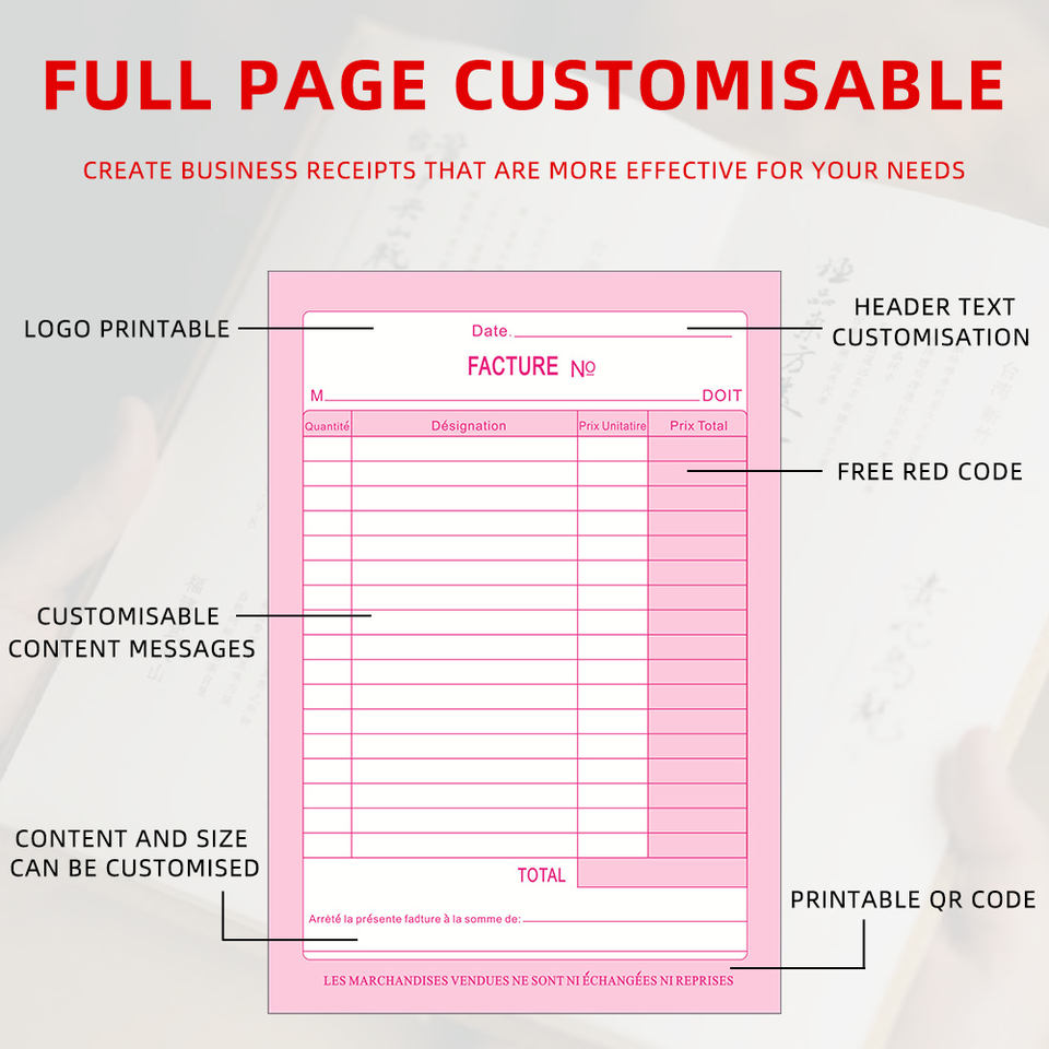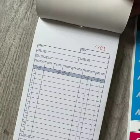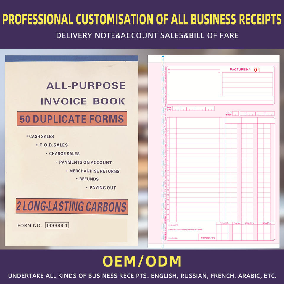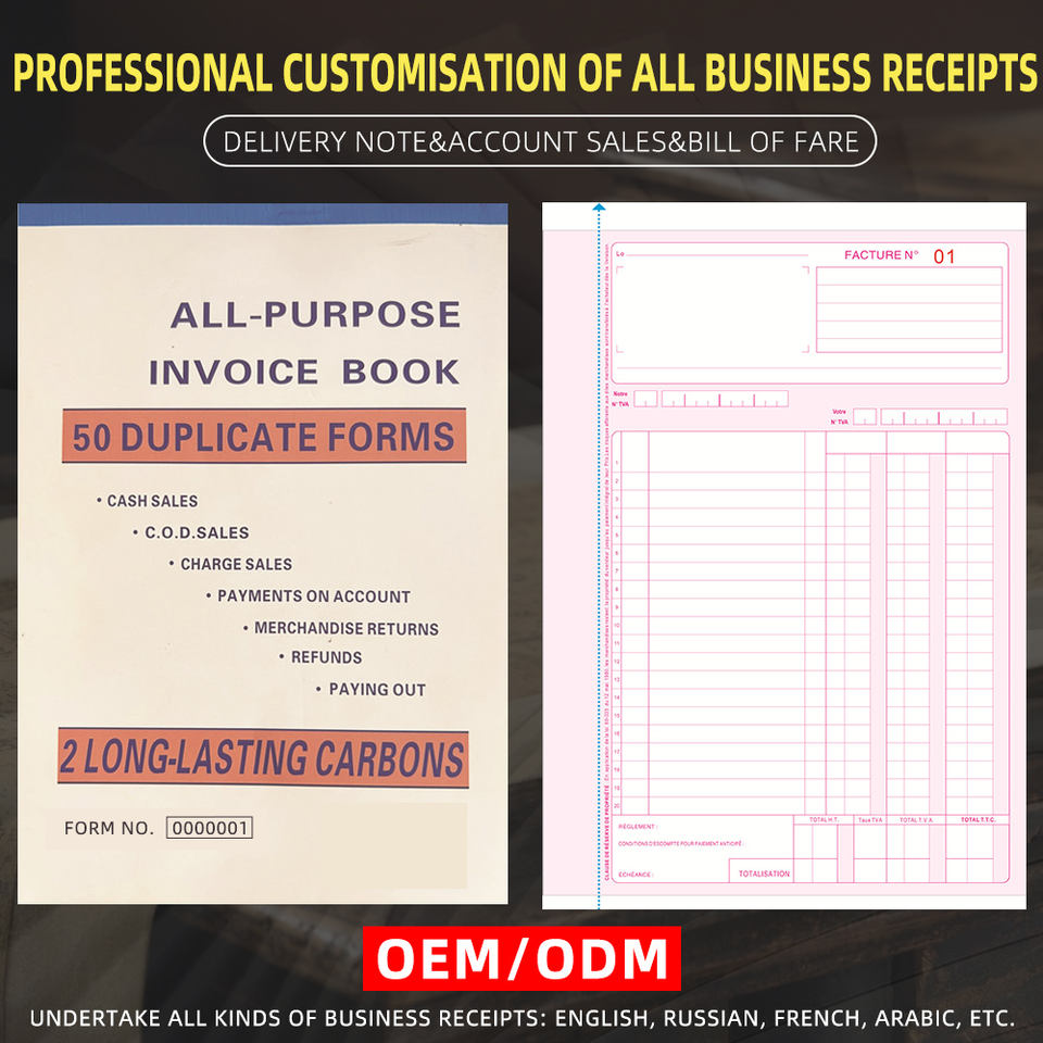 Livre de reçus d'argent et de loyer personnalisé en deux parties autocopiantes 7-5/8 "X 11" reliure en spirale par livre 4 reçus par page (1 paquet)