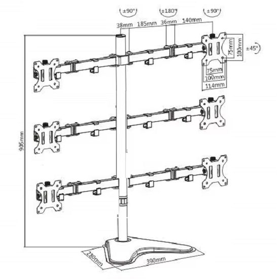 Support de bureau pour moniteur avec six bras pour écrans LCD à LED avec réglage de la hauteur de l'articulation et système d'organisation des câbles