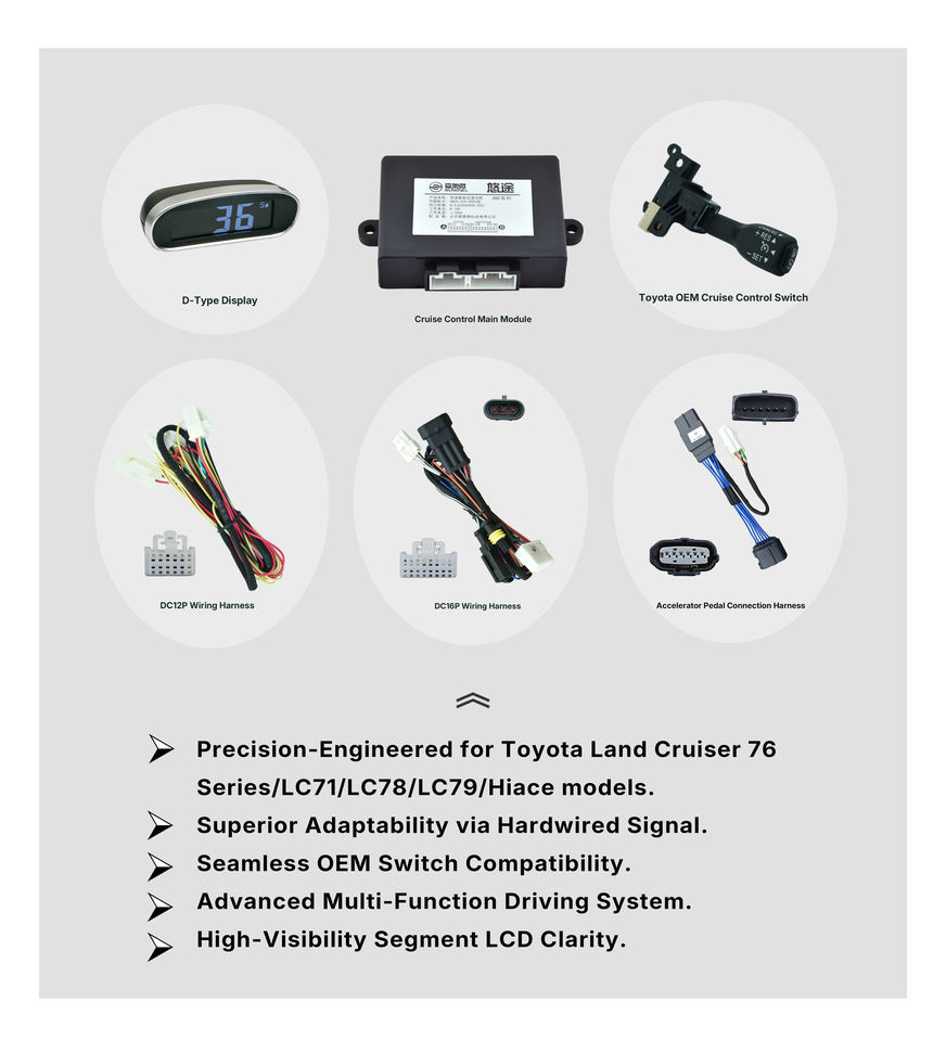 Kit de Rétrofit de Régulateur de Vitesse pour Toyota Land Cruiser LC71/LC76 avec Écran Monochrome – Contrôle de Vitesse Plug-and-Play.
