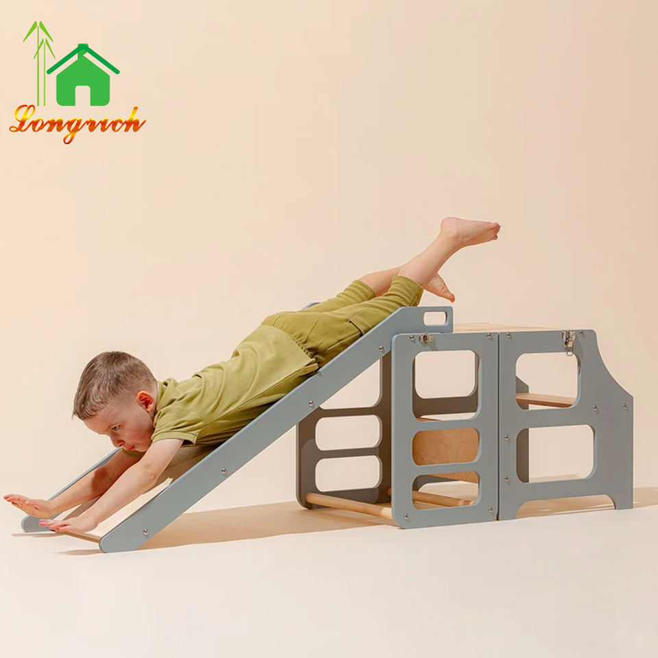 Tabouret d'apprentissage pliable Montessori 3-en-1, tour de cuisine transformable avec toboggan, mobilier de chambre moderne