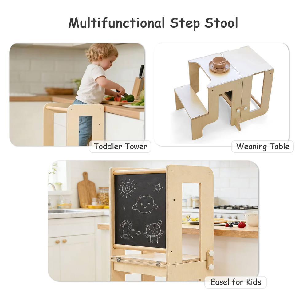 Tour d'apprentissage Montessori réglable et pliable 3-en-1 avec table, chaise et tableau de dessin pour salon et chambre