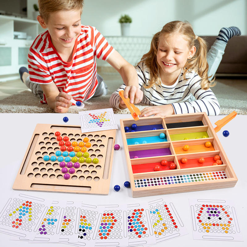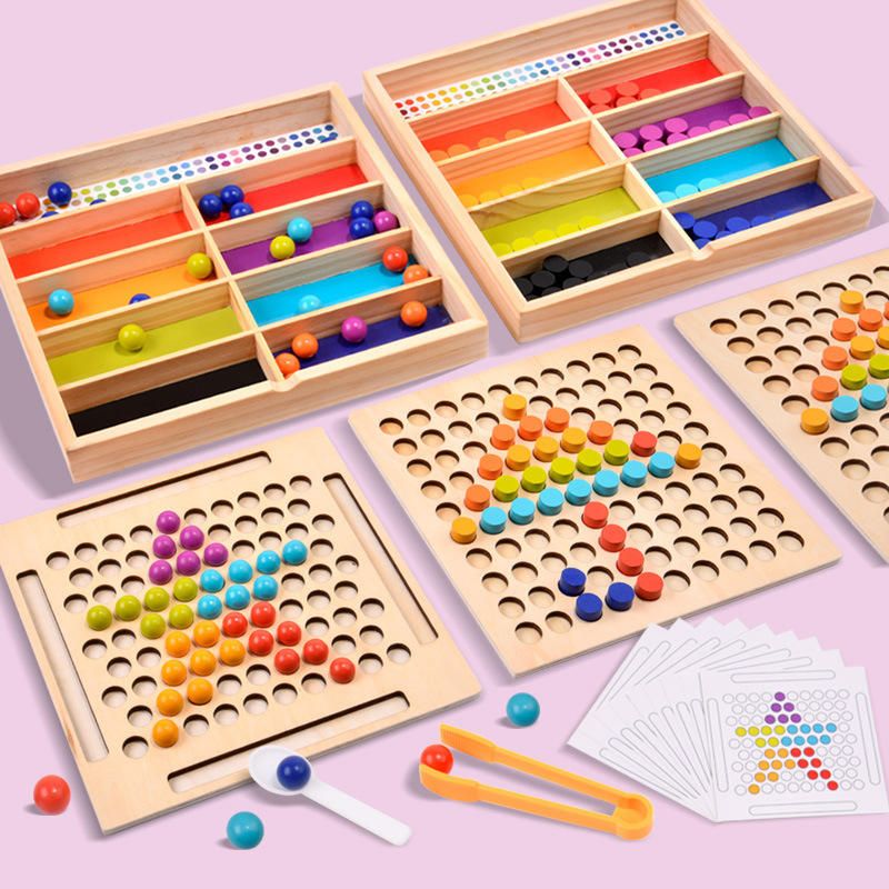Ensemble de jouets Montessori pour enfants garçons filles en bois couleur pince perle pilier jouets