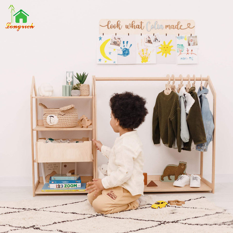 Portants à vêtements Montessori pour enfants avec étagères de présentation durables pour vêtements pour enfants