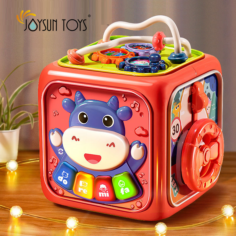 Montessori multi-fonction musique et lumière triez et découvrez le Cube d'activité jouets pour bébé de 6 à 18 mois