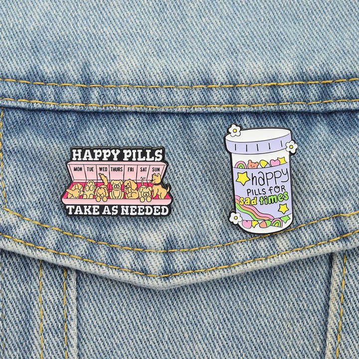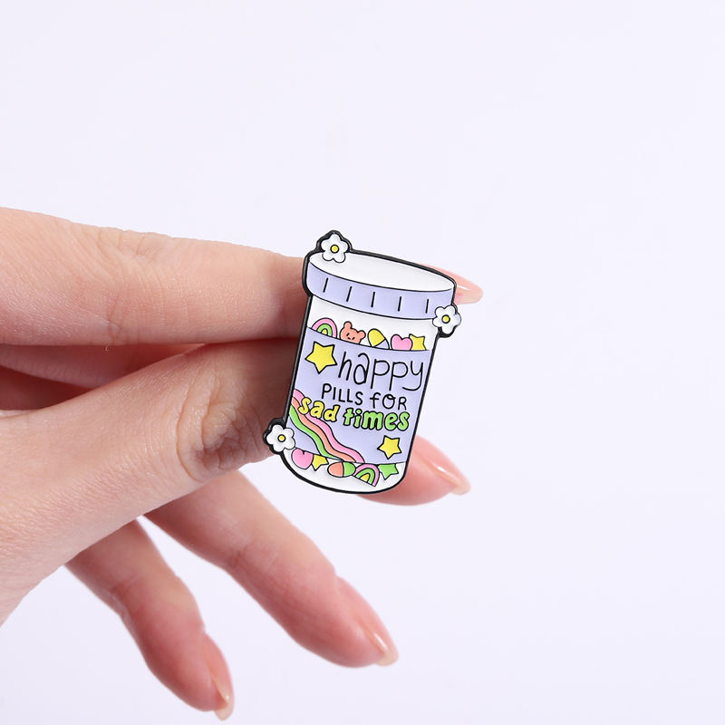 Broche en émail stimulant l'humeur, style émotionnel mignon, à prendre selon besoin, citation sur la joie, médicament, badge de revers, vente en gros