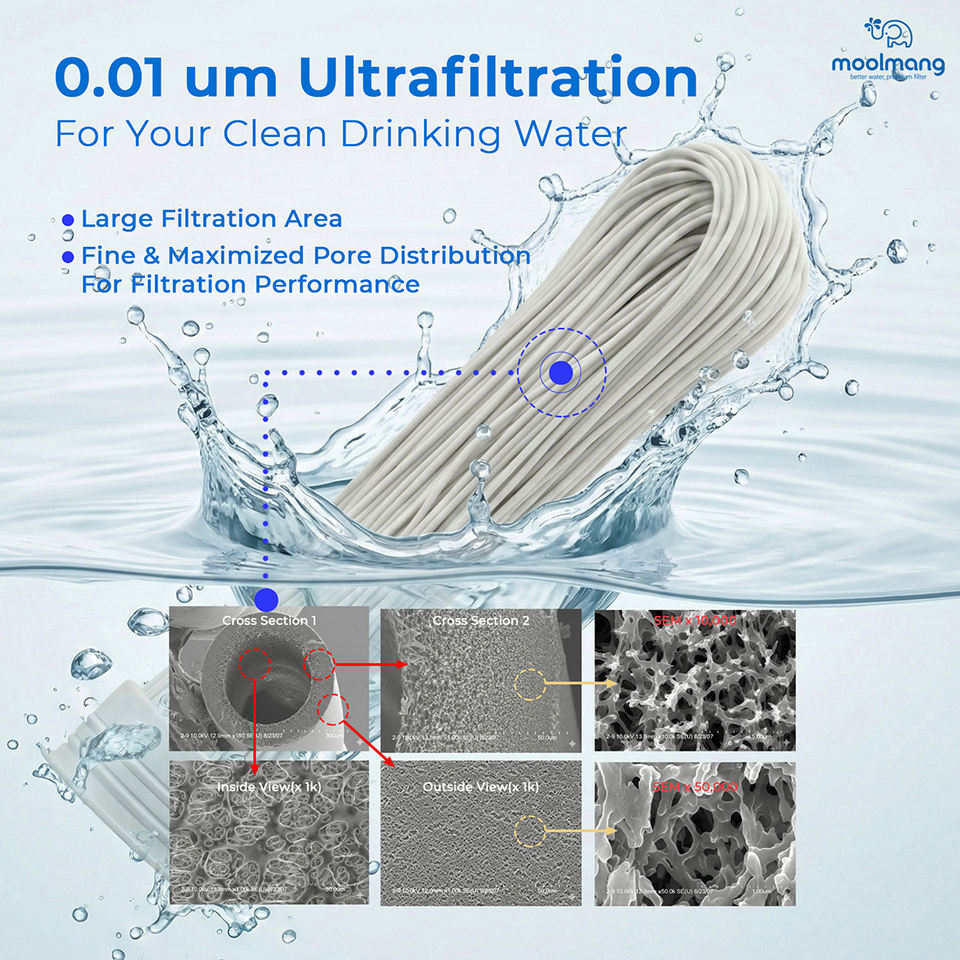 Purificateur d'eau domestique sous-évier Moolmang Premium 11 pouces, 4 étapes, UF, sans réservoir, durée de vie du filtre 12 mois, 1600 GPD, changement rapide