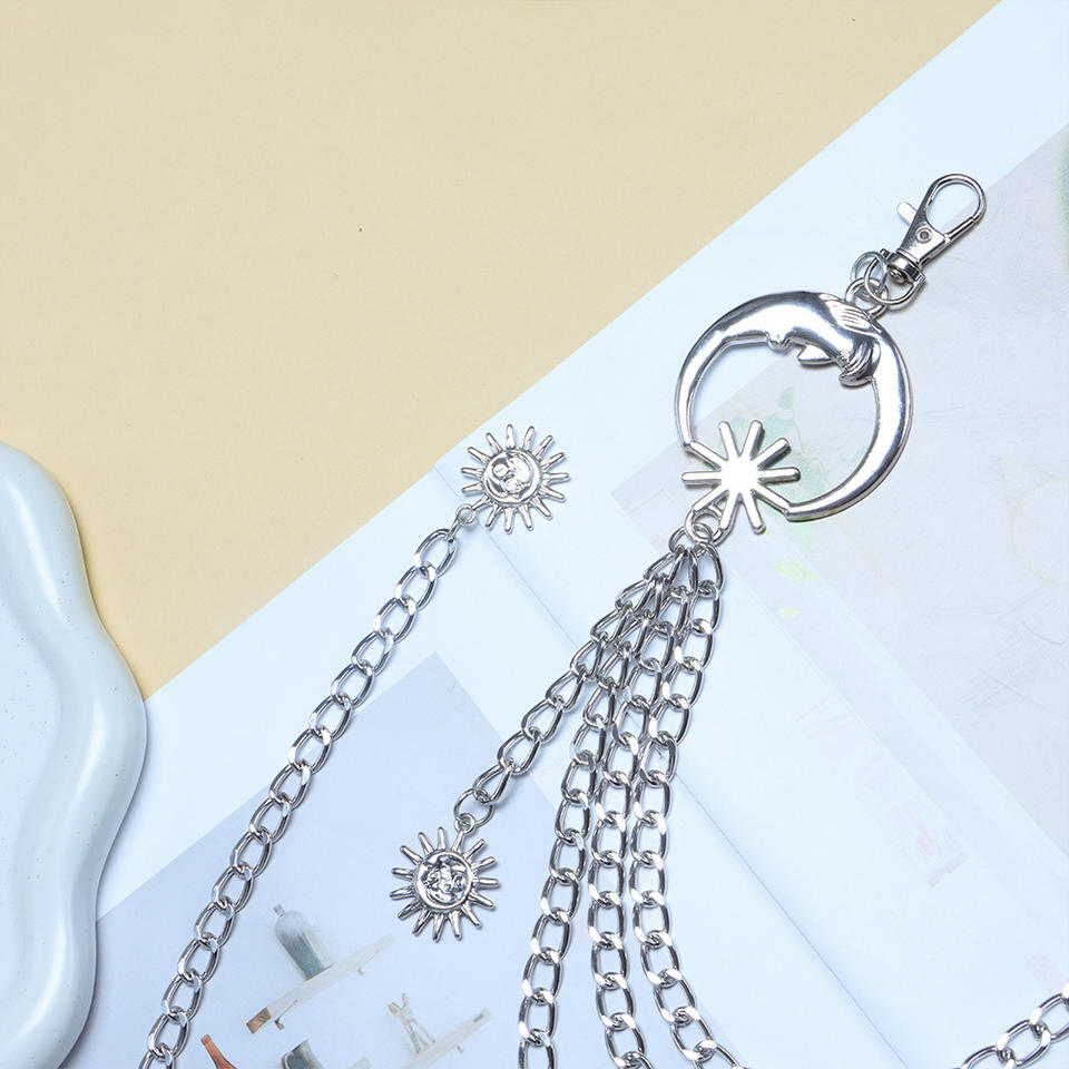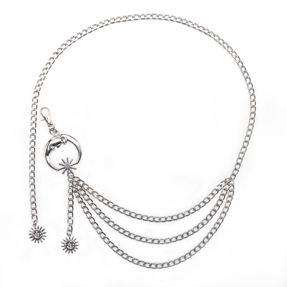 Chaîne de taille en métal lune et soleil, argent tibétain, plusieurs chaînes, chaîne décorative pour le corps, pour jupes, pantalons, usage quotidien